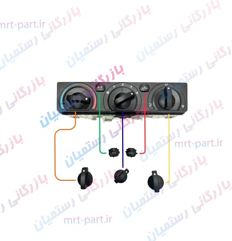 پک کامل کلید پنل بخاری روتاری باریک (Narrow Rotary HVAC Control Kit)، مجموعهای از اجزای کنترلی است که روی پنل بخاری دستی با طراحی ظریفتر و باریکتر نصب میشود. این مجموعه به عنوان رابط کاربری سیستم تهویه مطبوع عمل کرده و امکان تنظیم سه پارامتر اصلی (دما، سرعت فن، جهت هوا) به همراه فعالسازی کولر و گردش هوا را فراهم میکند.